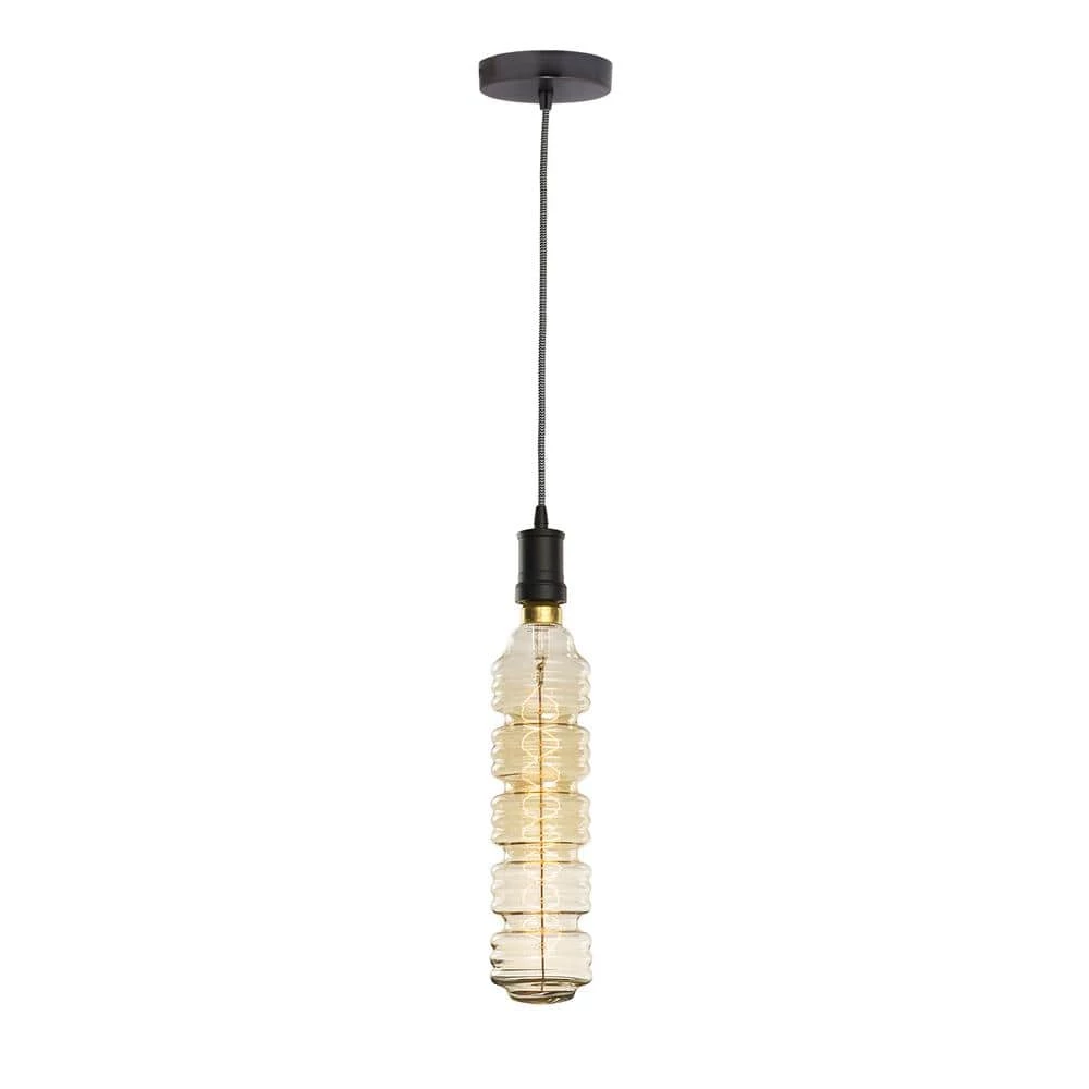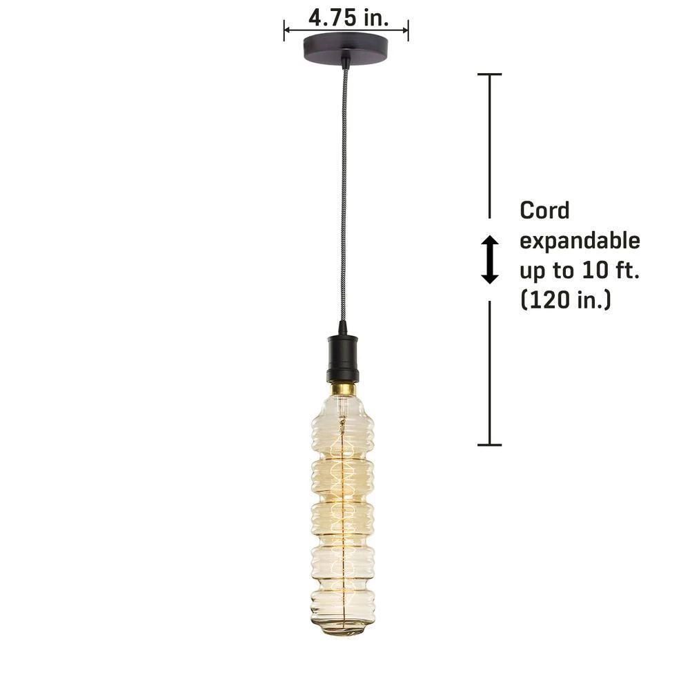 Bulbrite Contemporary Pendant – Black socket and canopy with 10′ Black and white chevron cord Bulbrite contemporary pendants come in a variety of finishes and cord colors. With black, white, gunmetal and warm gold finishes, these pendants bring a detailed and clean design to your space. Combined with Bulbrite’s 60W Water Bottle Shaped Grand Nostalgic Spiral the result is a simple and brings life to any room.