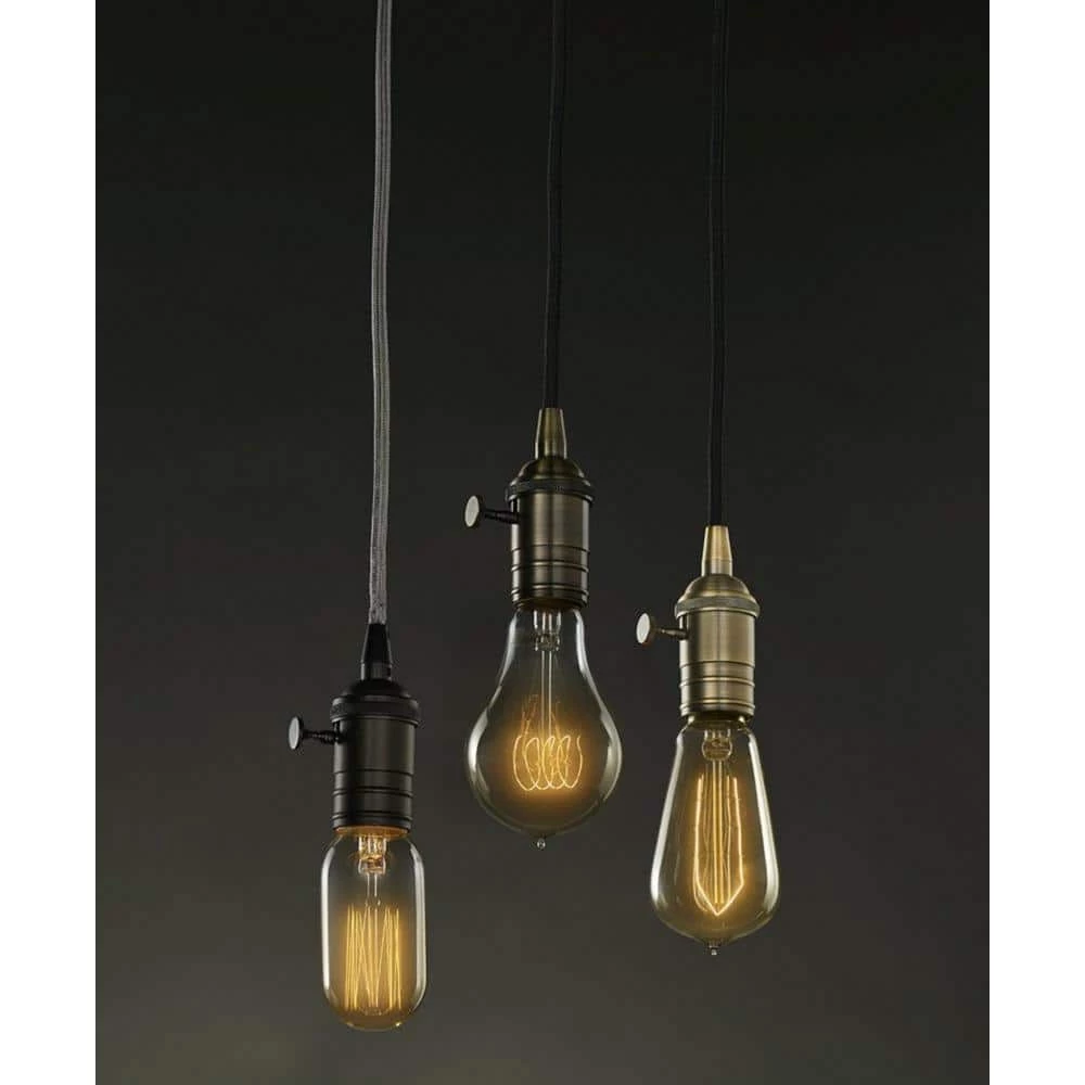 Bulbrite Vintage Pendant – Warm Gold socket and canopy with 10′ black cord Bulbrite vintage pendants are timeless. Available in classic Bronze, Gunmetal and Warm Gold finishes, this collection provides a warm and everlasting style. When paired with Bulbrites Incandescent 60W Pear Shaped Grand Nostalgic Light Bulb, they create a look to make anyone envious.