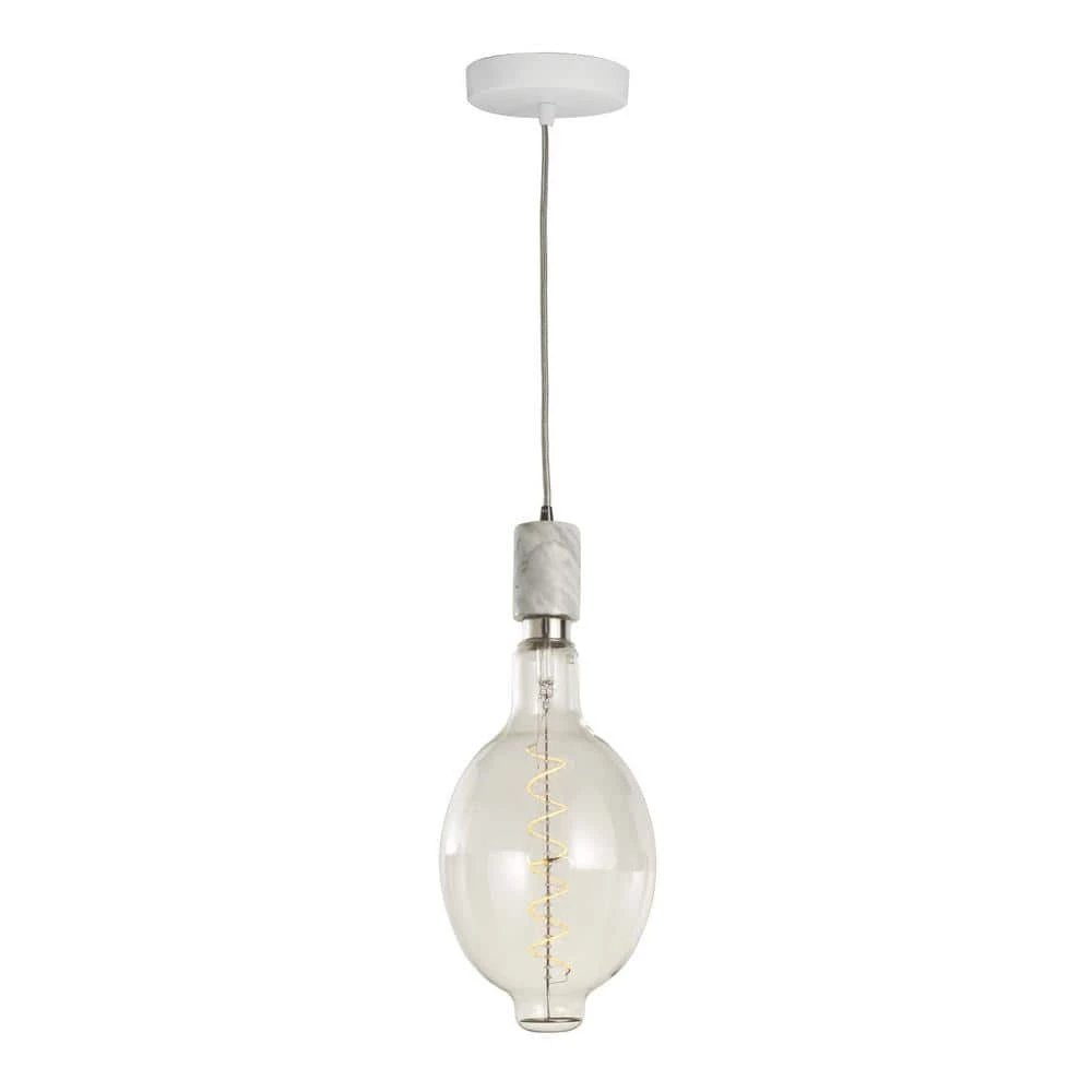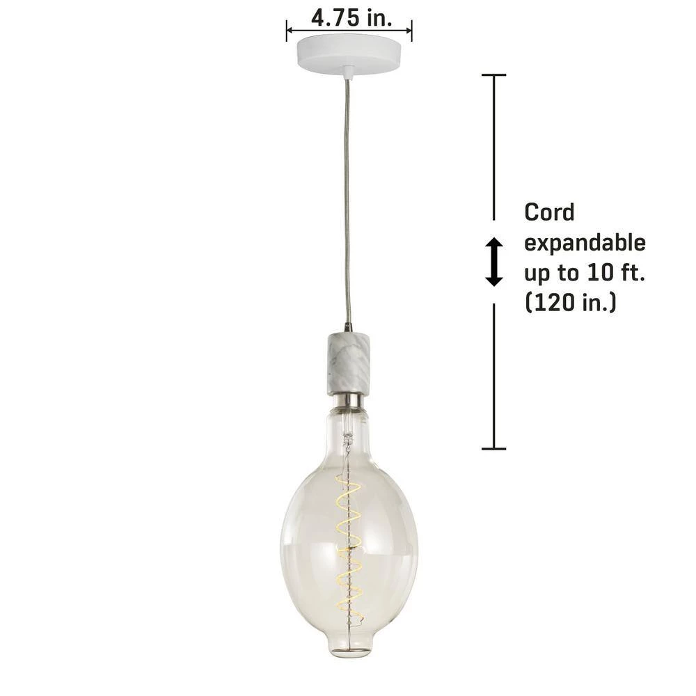 Bulbrite natural marble pendant – White marble pendant with 10 ft. silver cord. Bulbriteft. natural marble pendants add a breath of fresh air to any area, creating an organic feel to an otherwise ordinary space. With finishes in black and white, each pendant is uniquely marbleized, making them exclusive pieces for your home or office. Marry this pendant with Bulbriteft. LED 4-Watt BT Shaped Grand Nostalgic Light Bulb for a stunning look.