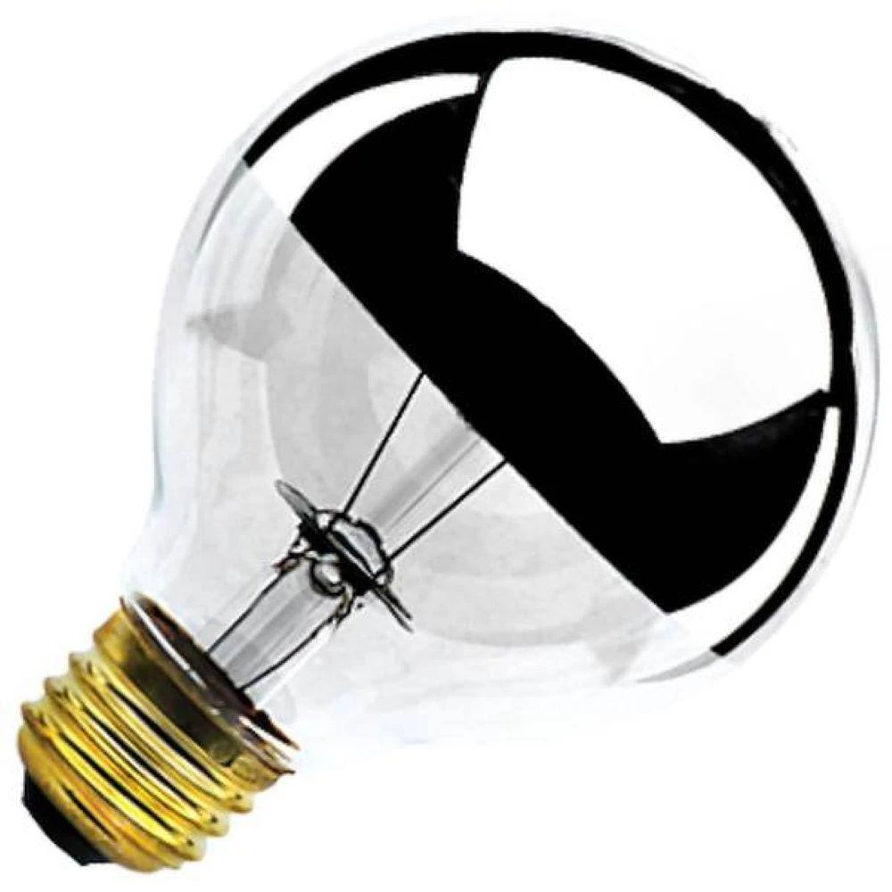 - HALF CHROME: Ideal for use in decorative lighting, the metallic chrome finish provides mirrored top that reflects light and is perfect for base up, overhead fixtures, these bulbs add decorative flair to any Compatible fixture in your home or business, the round globe appears dipped in silver.