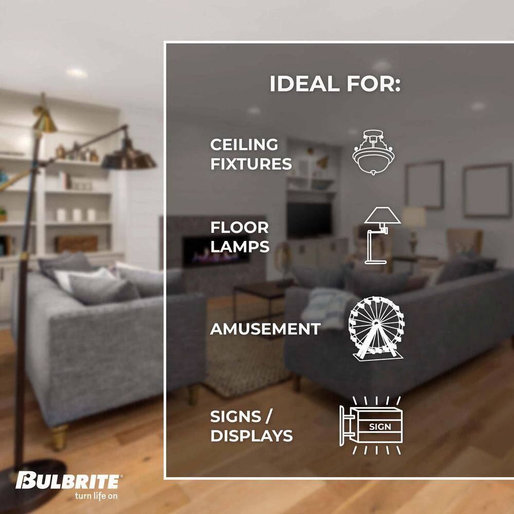 - Multiple uses: the S14 shape is ideal for sign applications and string lights, the standard (E26) base is ideal for use in ceiling fixtures and portable lighting, this Pack of six bulbs is great for swapping out burned out bulbs in your outdoor string lights for a longer lasting option.