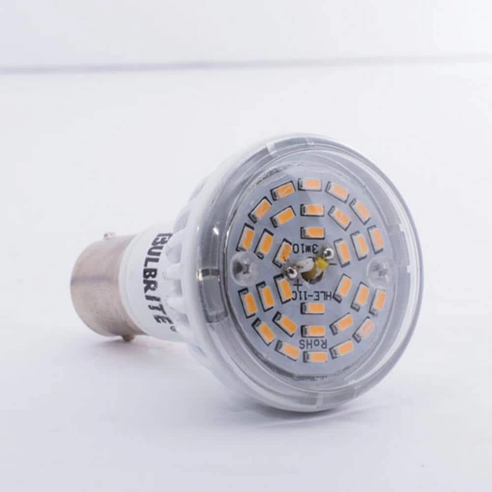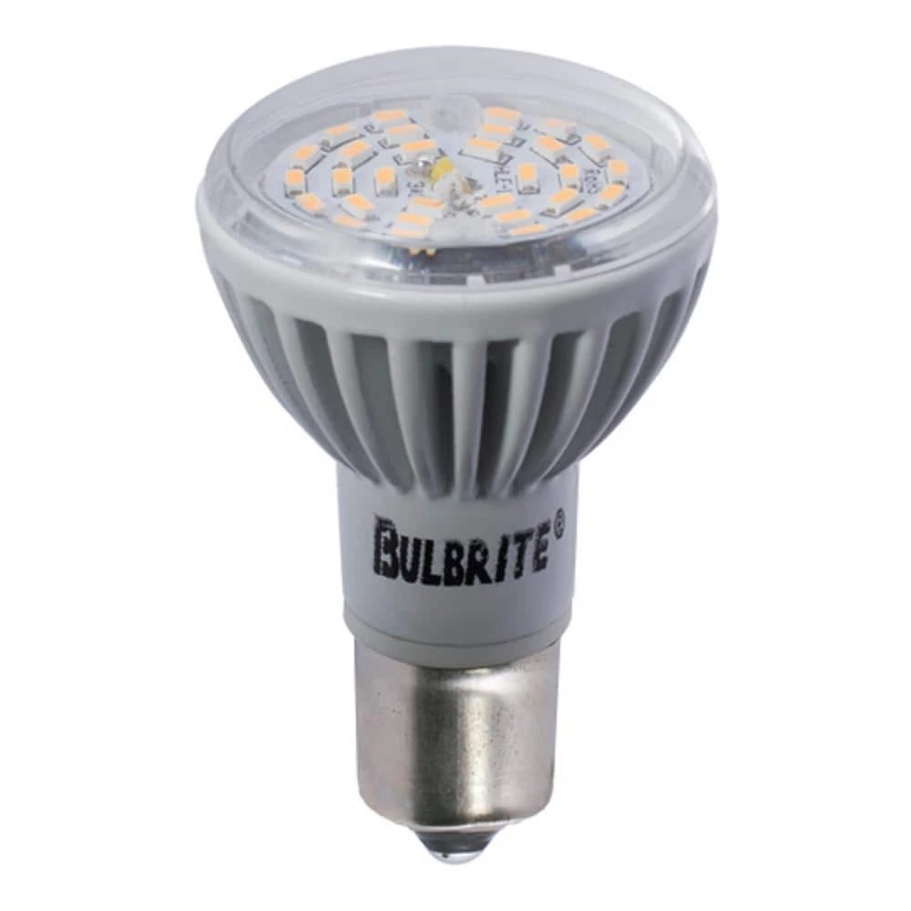 - Specifications: included in this package is a single LED R12 light bulb. These elevator bulbs are non dimmable with a single contact bayonet base BA15S. At just 2 watts they are the equivalent of a 20 watt incandescent bulb. Rated at 3000K.