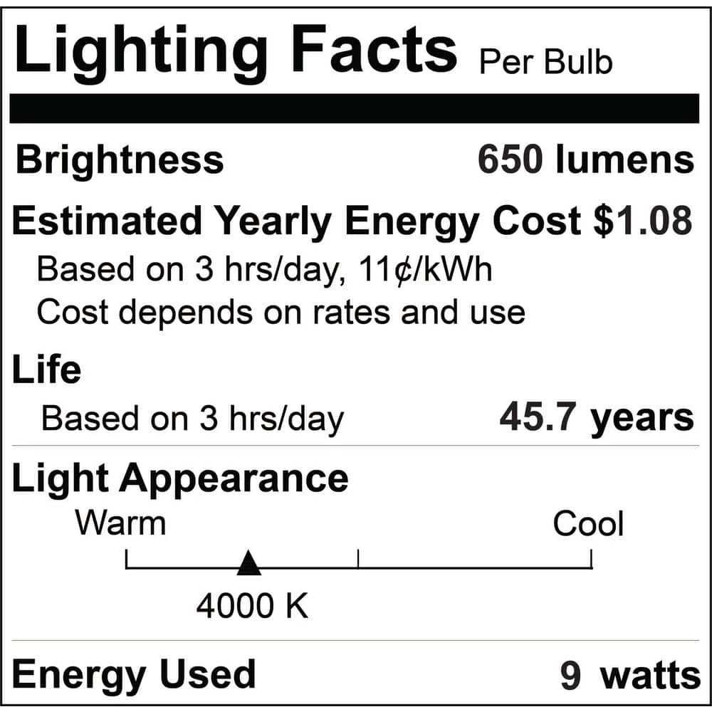 - Specifications: included in this purchase are two LED recessed downlights with a metal Jbox, each integrated light is 9 Watts (65 Watt Equivalent) and has a color temperature rating of 4000K, for a cool white light, the integrated light itself is 4 in. in diameter, the required cut out size is 4.5 in, each fixture has a baffled trim in a white finish.