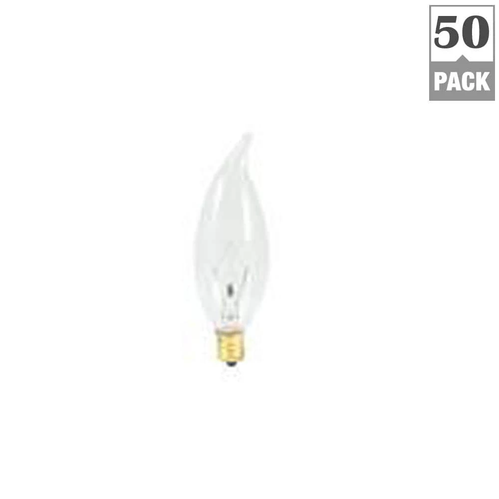 - Specifications: included in this purchase are 50 individual incandescent bulbs, each CA10 bulb has a standard E12 candelabra screw base, these bulbs are each 40 watts and fully dimmable, they are rated 2700K and have a clear glass flame tip. Dimensions are ‎4 x 1.25 x 1.25 inches.