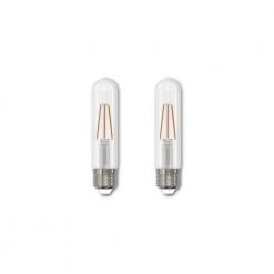 This 2-pack of dimmable LED 5-Watt bulbs offer bright white lighting for your home in any E26 compatible fixture. Cast a perfect glow over your home with the power of a long-lasting LED bulb. The Bulbrite 5W LED T9 3000K Filament Bulb is a tubular bulb with a 1 and one eighth-inch diameter that you can use for bright commercial lighting or as a general-purpose bulb for homes. The clear finish offers a soft, white light to welcome guests into your home.