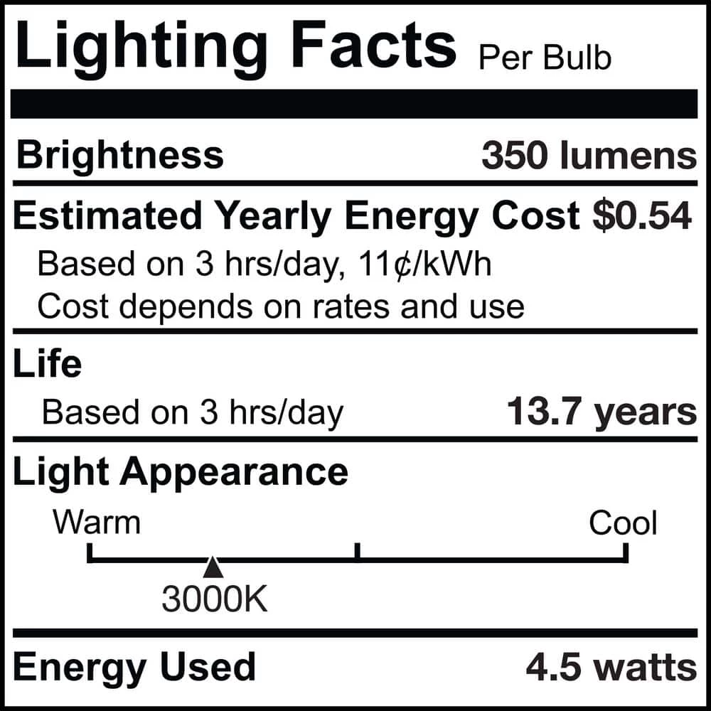 - PERFECT LIGHTING: the 3000-Kelvin white light offers a soft hue for an inviting atmosphere, the clear finish of each bulb helps to emit that white light for optimal mood and setting in your home. with LED technology, these bulbs outlast and outperform their incandescent and halogen counterparts.