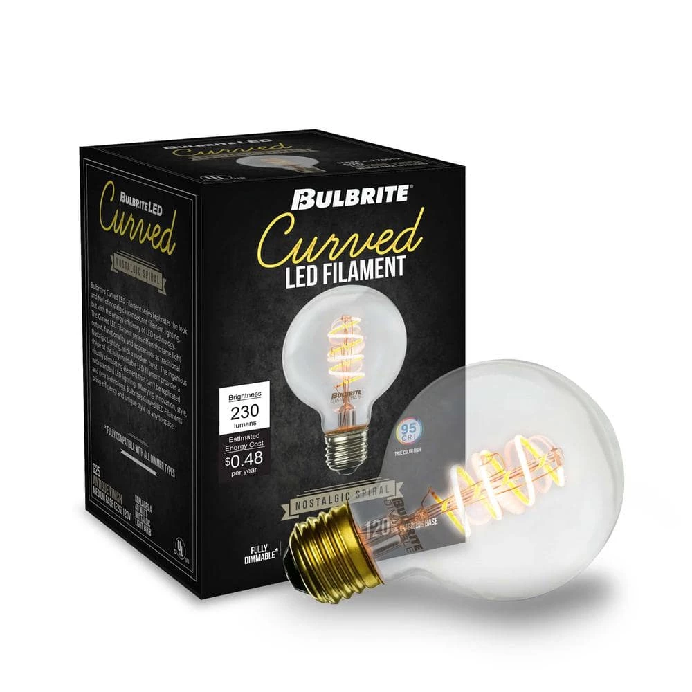 - Specifications: included in this package are two individual LED bulbs, these 4-watt G25 bulbs have a medium E26 screw base and are fully dimmable. Housed within the glass globe is an antique nostalgic curved filament. These bulbs are 2200K and 85 CRI.