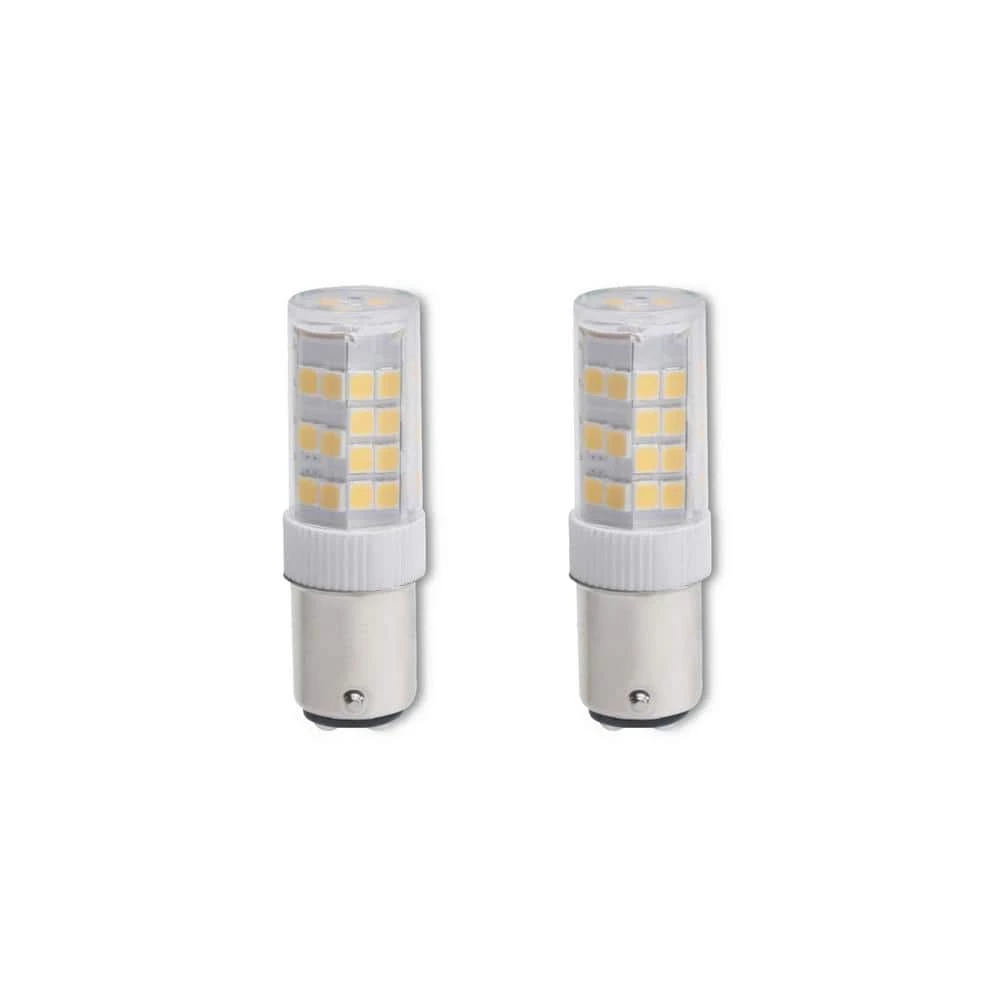 - Specifications: included in this package are two, 4.5 watt mini T4 bulb, each bulb is dimmable with a BA15D bayonet base. At 4.5 watts, these LED bulbs are the equivalent of a 35 watt bulb, each of them have 400 lumens, 80 CRI and 3000K.