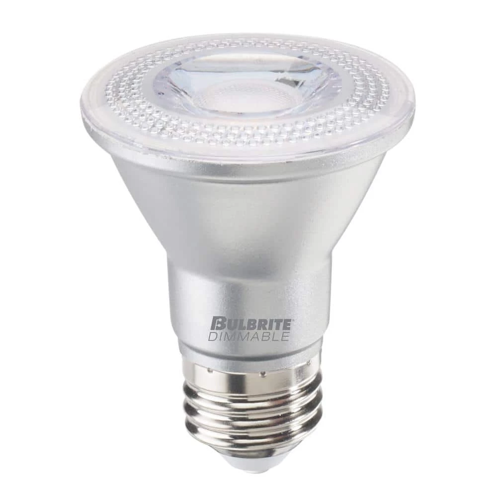 - Specifications: included in this package are six individual 6.5 watt flood lights, each LED PAR20 bulb has a medium E26 screw base. And each bulb is fully dimmable and rated at 3000k, 488 lumens and 90 CRI. These bulbs last 25,000 hours each!