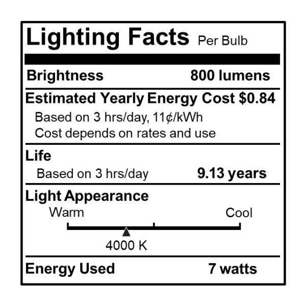 - 800 Lumens of warm white light, equivalent to a 60-Watt incandescent bulb