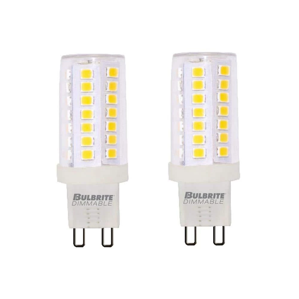 - Specifications: included in this package are two individual, 5 watt mini T6 bulbs, each bulb is dimmable with a bi-pin G9 base. At 5 watts, these LED bulbs are the equivalent of a 20-40 watt bulb, each of them has 550 lumens, 120 volts and 2700K, each bulb is ‎‎‎4.4 x 0.83 x 0.83 inches.
