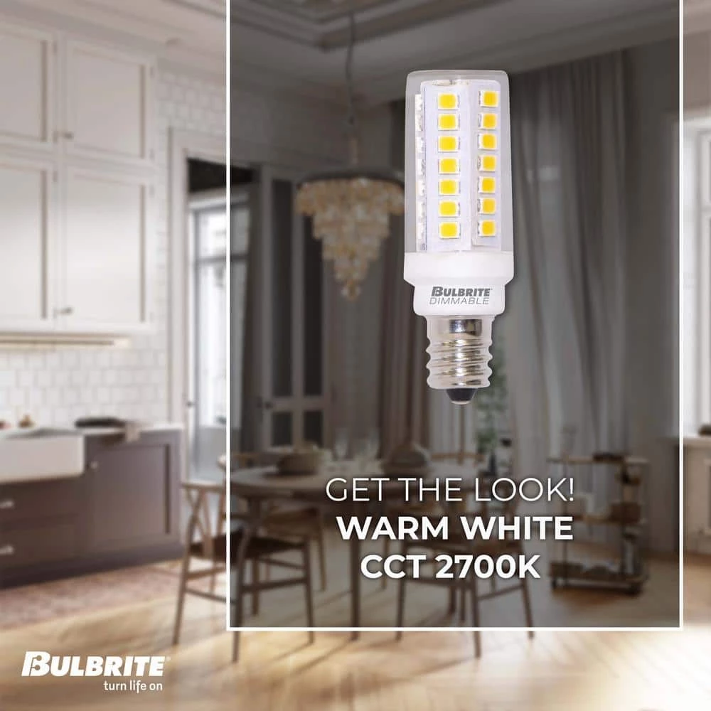 - Specifications: included in this purchase are two individual LED bulbs, each T6 bulb has an E12 screw base and is just 5 watts, these bulbs are fully dimmable and last about 25,000 hours each, they are rated at 2700K and emit a Warm white light. Their dimensions are2.323 x 0.748 inches.