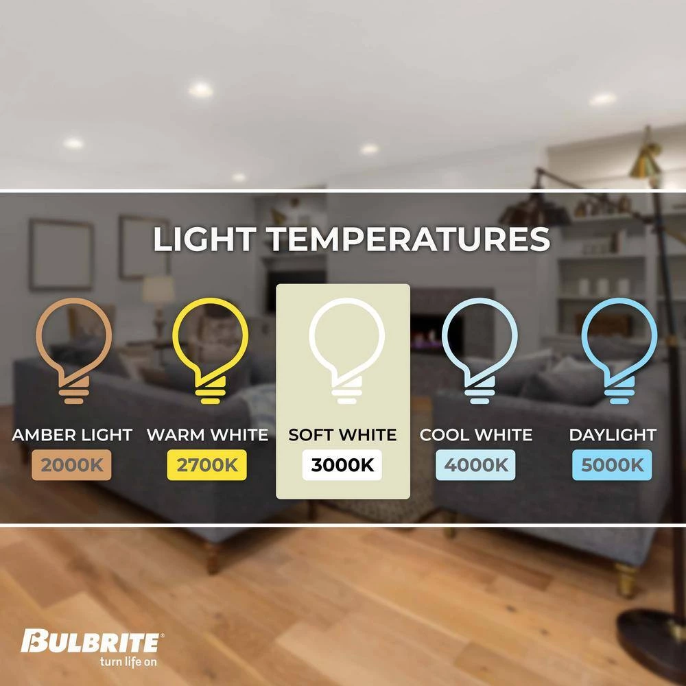 - Soft white light: with a Kelvin score of 2900 each, these bulbs emit a Warm white light, this rating means your lamp or ceiling fixture will emit a perfect amount of light that is not too dim and not too harsh, they’re also fully adjustable meaning you can control the ambience of your room.