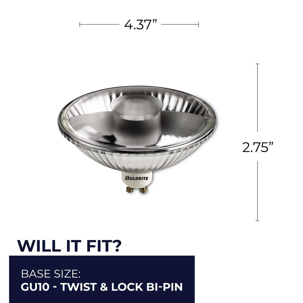 Bulbrite is proud to offer the hard to find Halogen R111 reflectors with GU10 base. These bulbs emit a soft white light and come with a GU10 twist and lock base. They offer a precise beam spread and are UV safe for indoor or outdoor uses. These bulbs are also fully dimmable.
