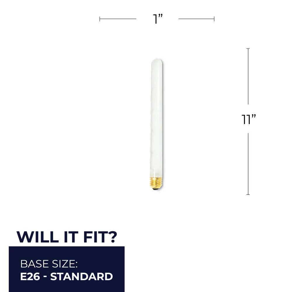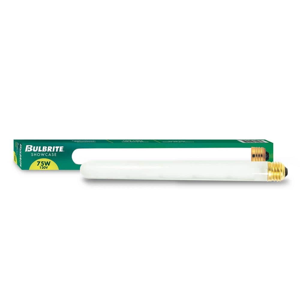 - Specifications: included in this box are five individual 75 watt T8 bulbs, each bulb has a medium E26 screw base, these bulbs have a frosted glass finish, but are also available in clear glass, each bulb is rated at 2700K. Dimensions are ‎11 x 1 x 12 inches.