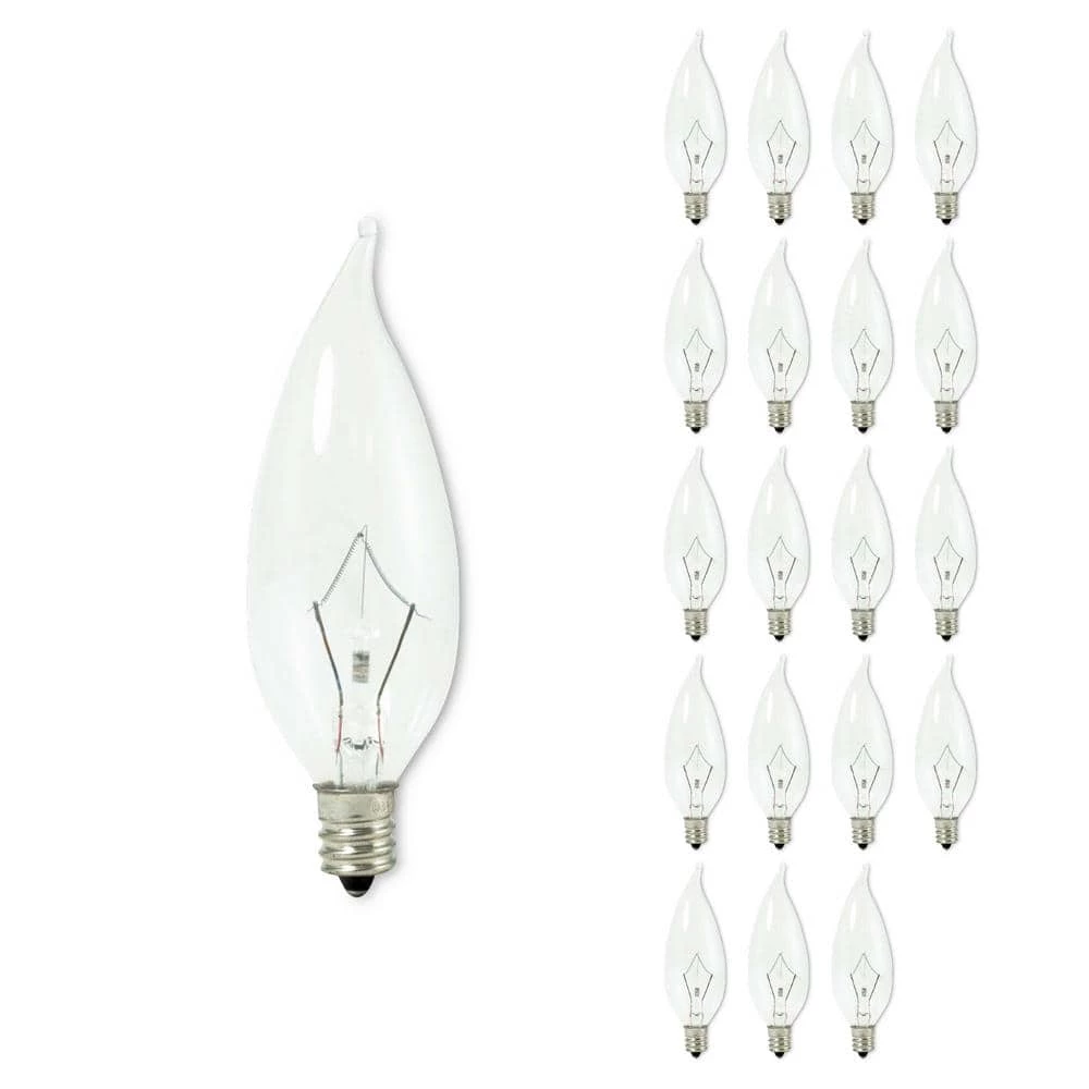 - Specifications: included in this purchase are 20 krypton/xenon bulbs, each candelabra bulb has an E12 screw base, these bulbs have a clear glass finish and each bulb is 25 watts and 2700K, each bulb is fully dimmable. Its dimensions are ‎4 x 1.26 x 1.26 inches.