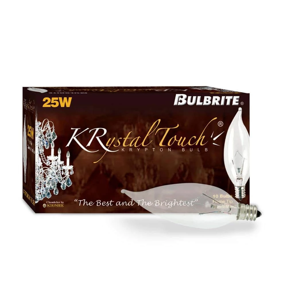Bulbrite helps you see, do, engage and experience every moment as it’s meant to be. Bulbrite is here to inspire you to Turn Life On in a way that only the right, beautiful light can do. Each candelabra bulb has a standard E12 screw base. These bulbs are each 25-Watts and 2700K. They are fully dimmable and great for several residential or commercial uses. Each krypton/xenon bulb is designed to outlast and outperform its incandescent and halogen counterparts.