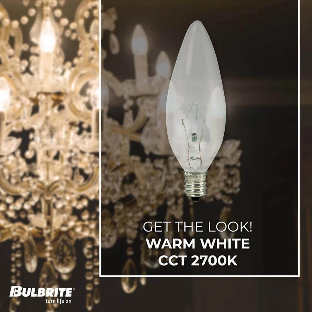 Bulbrite krystal touch series bulbs are manufactured with krypton and xenon gas to create a crystal Clear bright, white light as well as the added benefit of longer life. Ideal for decorative lighting in chandeliers, wall mounts, sconces and outdoor fixtures. Creates sparkling white light by eliminating the yellow dullness present in standard chandelier bulbs.