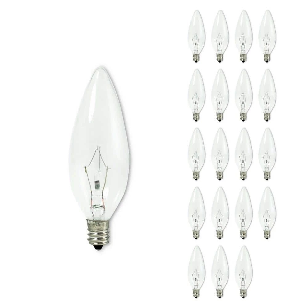 - Specifications: included in the box are 20 individual krypton/xenon bulbs, each bulb is a 40 watt dimmable Torpedo shaped bulb. These B10 bulbs have an E12 screw base, they are rated at 2700K with a clear finish. Made with Krypton/xenon gas from Japan.