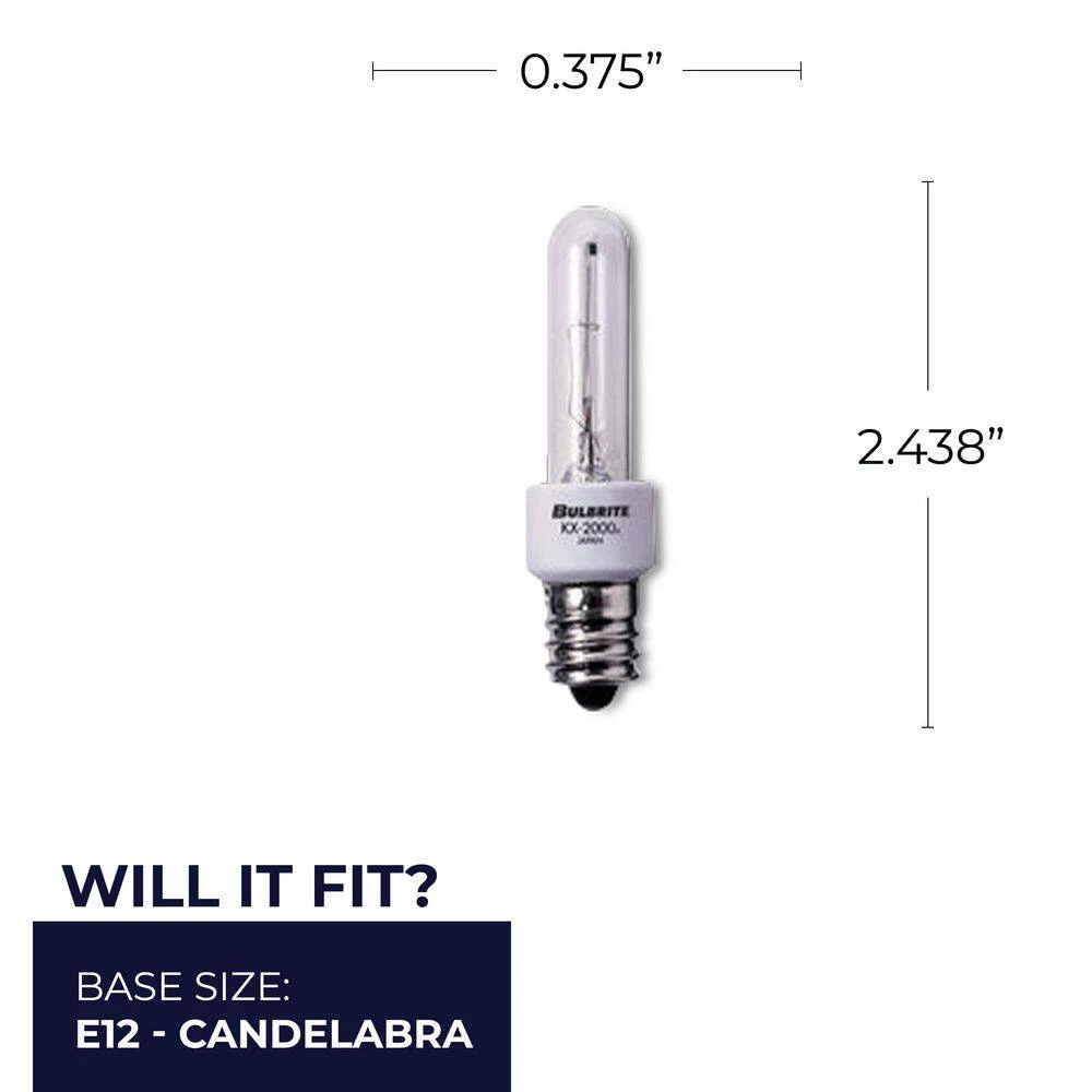 - Specifications: included in this purchase are two individual Xenon/Krypton bulbs, each T3 candelabra bulb has an E12 screw base, these bulbs have a Frosted finish which diffuses light, each 20 watt bulb is rated at 2700K and fully dimmable. Dimensions are ‎2 x 0.8 x 2.5 inches.