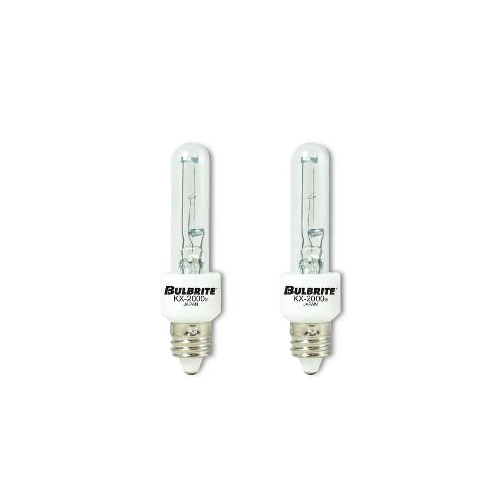 - Specifications: included in this package are two mini-candelabra T4 bulbs with an E11 screw base, each bulb is 40 watts with a clear glass finish. At 2700K you’ll emit a Warm white light throughout any room in your home, each bulb is 2.31 x 0.38 x 0.38 inches.