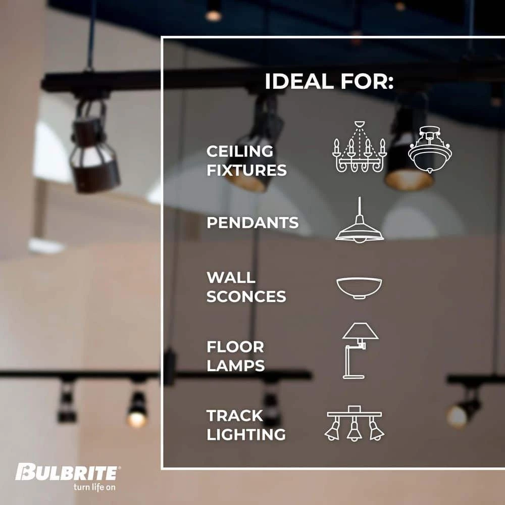 These light bulbs are ideally used for commercial use and provide a more energy-efficient alternative to Incandescent’ s by providing UV protection, greater light output and longer life. Perfect for line-Voltage pendants, recessed cans, track lighting and landscape applications. Full UV stop. Dimmable and provides UV protection.