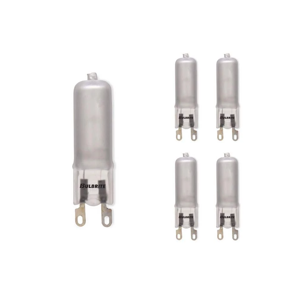- Specifications: included in this box are five individual halogen bulbs, each T4 bulb has a G9 bi-pin base, each bulb is 60 watts and rated at 2900K. These bulbs have a Frosted finish for diffused lighting, they are fully dimmable.