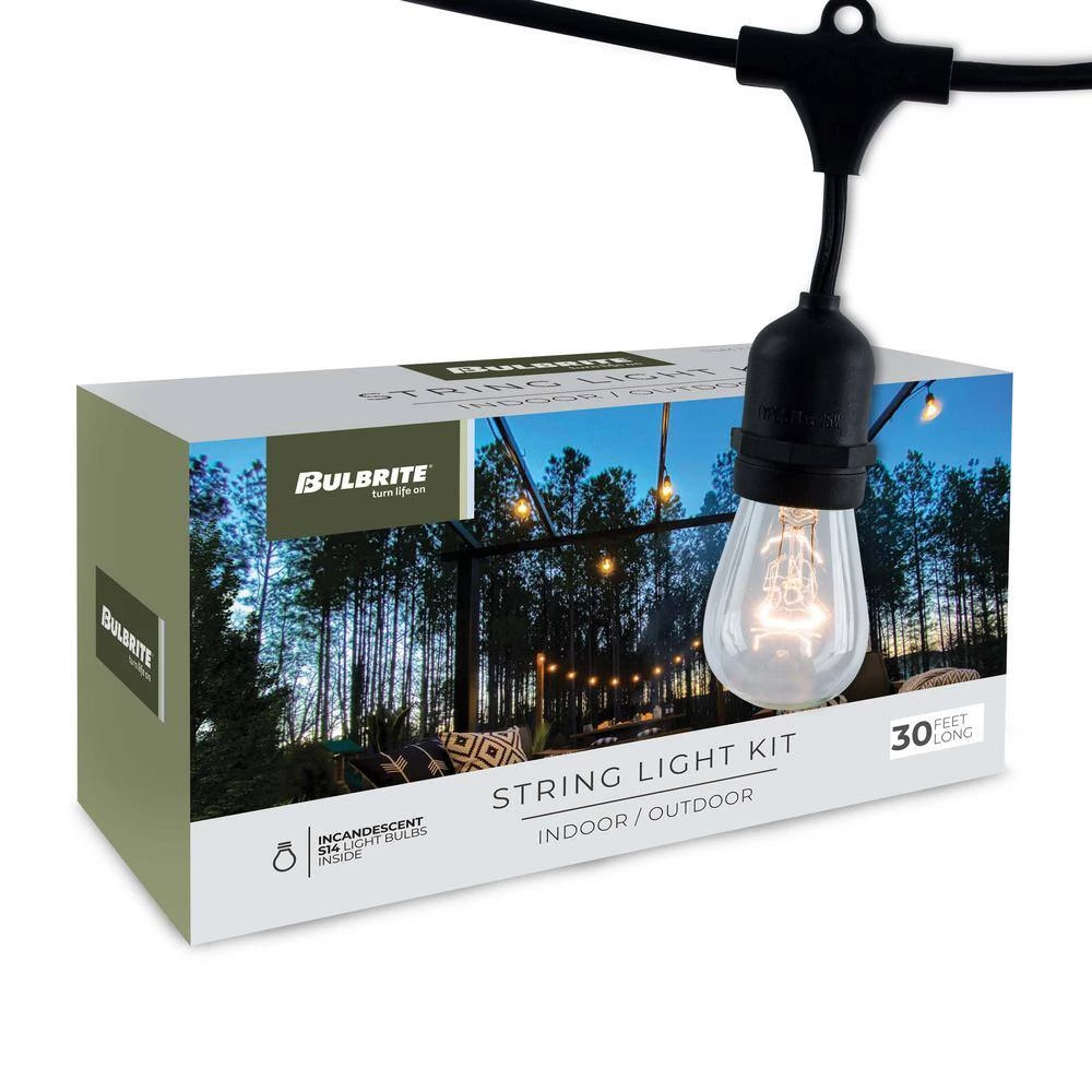 Turn your backyard into a bistro with Bulbrite’s 30 ft. String Light Kit with Clear Vintage Style S14 Incandescent Light Bulbs. These string light bulbs are safe to use both indoor and outdoor and tested to withstand water and weather. Use them confidently, knowing they are WET rated and won’t break when exposed to moisture, snow or wind. The included bulbs are long-lasting, meaning you’ll experience fewer burnouts and replacement needs along the string. The 2700-Kelvin white light offers a warm hue for an inviting atmosphere. Perfect for patio lighting, gazebos, porches, outdoor events, parties, restaurants/bars, weddings, living rooms, bedrooms and more. This string light kit will set an immediate tone and mood for your home whether you’re celebrating a holiday or simply decorating year-round.
