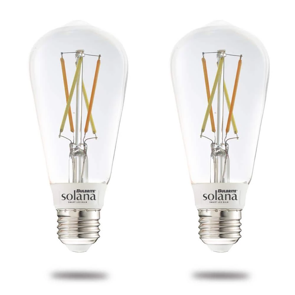 - SPECIFICATIONS: the Bulbrite Solana 2-Pack ST18 includes two WIFI connected bulbs with LED Filaments, the traditional Edison bulbs are clear glass for bright light that is adjustable for any room and any setting, any time of day. For use indoor or outdoor.